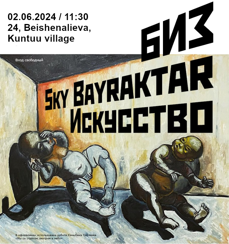 Биз, Sky, Bayraktar, Искусство: objects, installations, performances, paintings, and environmental art. The program includes 7 presentations, shoro, plov, tea.
